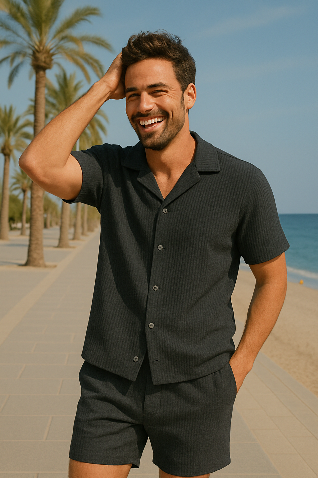 Til je zomerse garderobe naar een hoger niveau met dit premium zomerset. De perfecte balans tussen nonchalante elegantie en krachtige uitstraling, ontworpen voor mannen die weten wat ze willen.